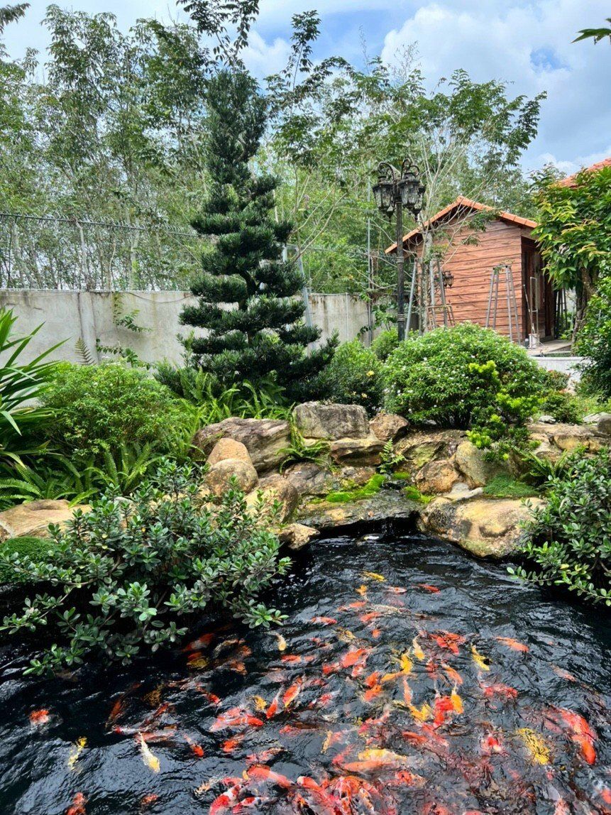 Thiết kế và thi công sân vườn hồ cá koi, thác nước Villa Mr Sơn